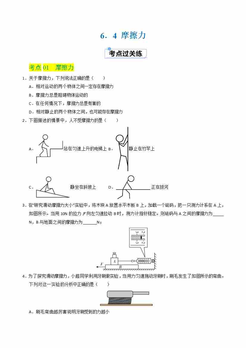 6.4 摩擦力(分层练习)(原卷版)