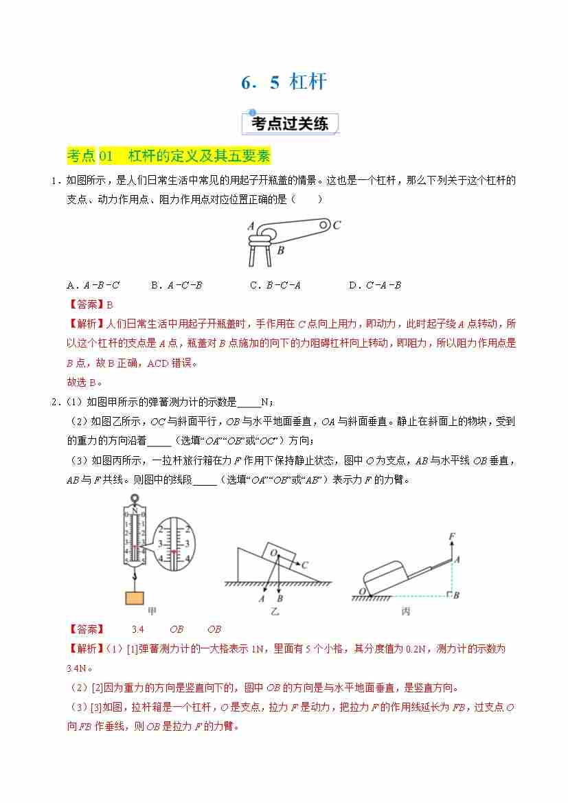 6.5 杠杆(分层练习)(解析版)