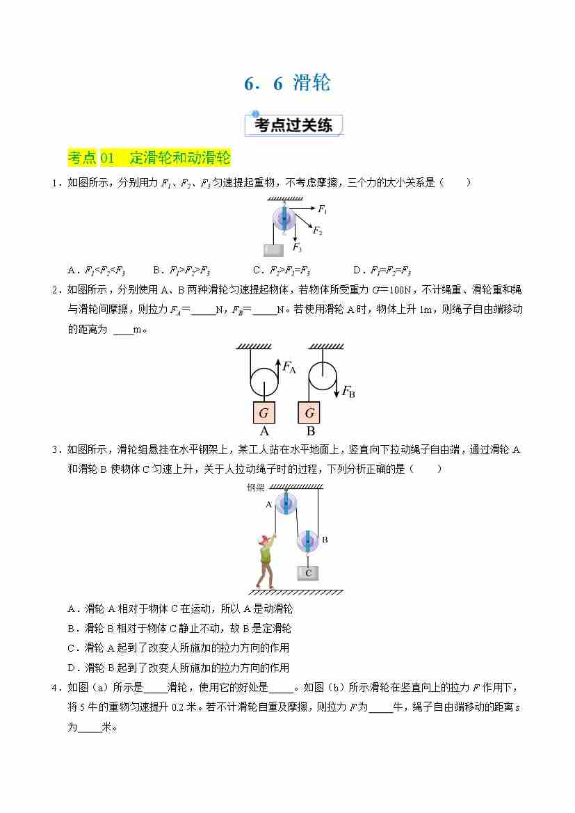 6.6 滑轮(分层练习)(原卷版)