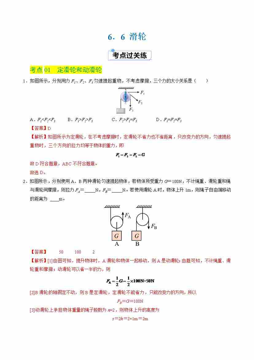6.6 滑轮(分层练习)(解析版)