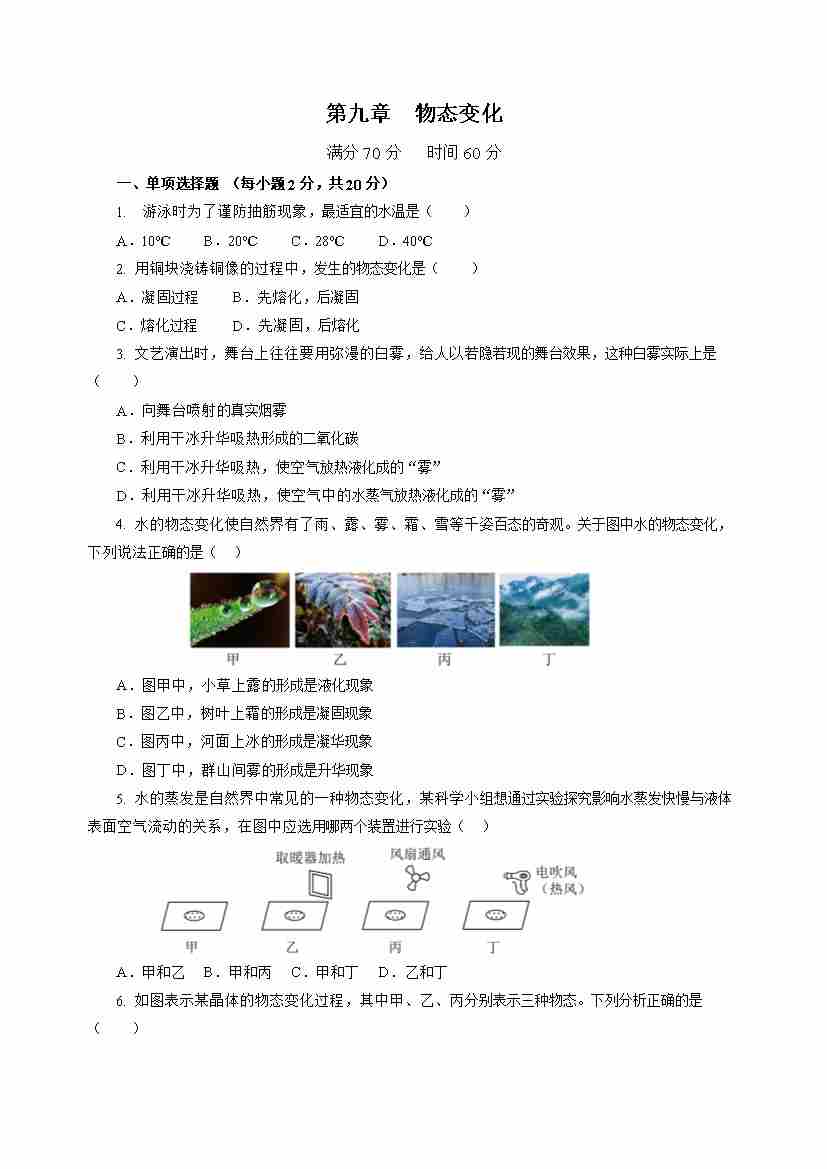 第九章 物态变化(单元测试)(原卷版)