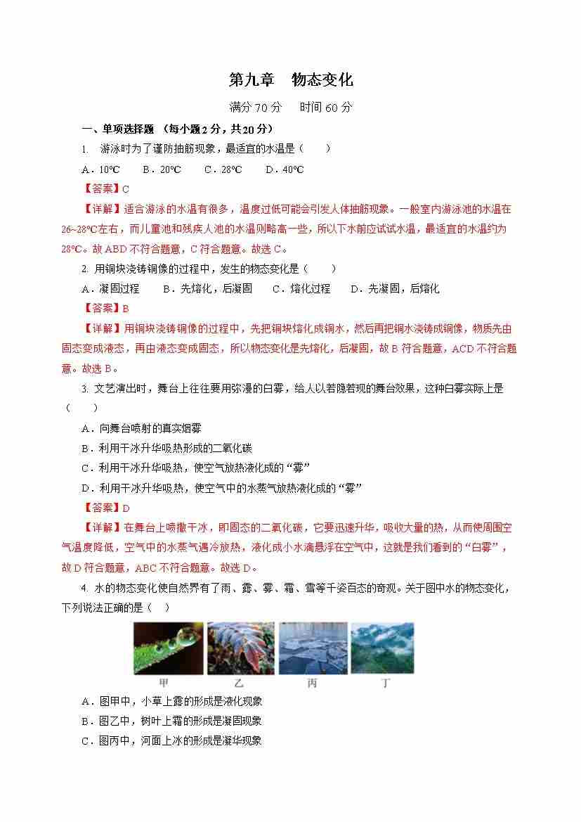 第九章 物态变化(单元测试)(解析版)