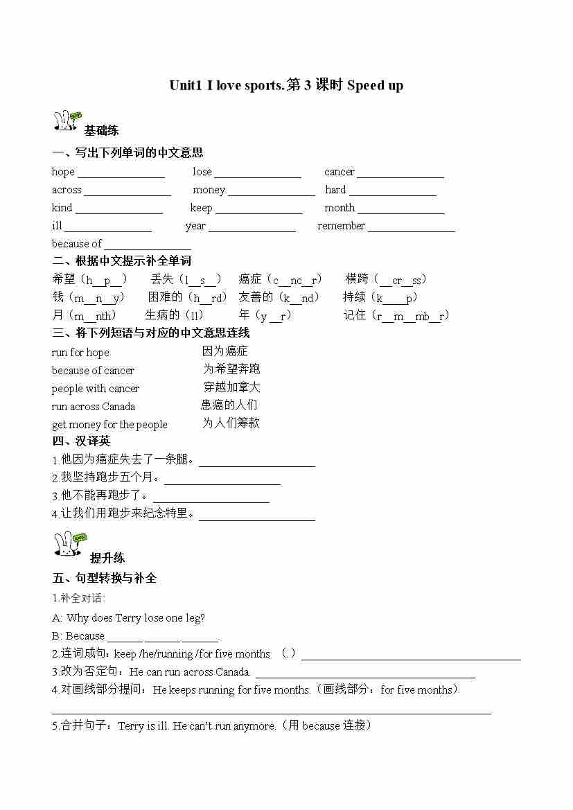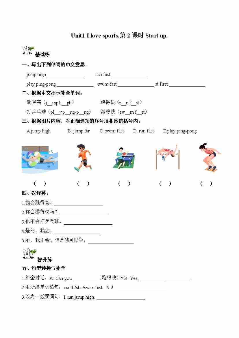 Unit 1 第3课时 Speed up(分层作业)英语外研版三起四年级上册(新教材)