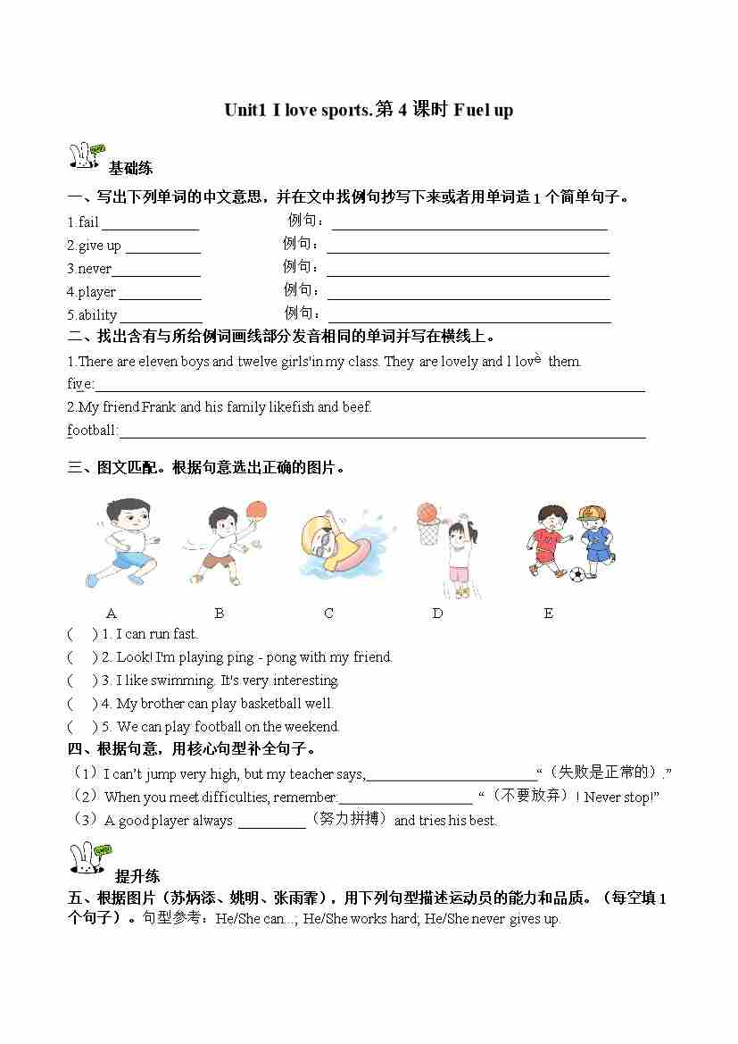 Unit 1 第4课时 Fuel up(分层作业)英语外研版三起四年级上册(新教材)