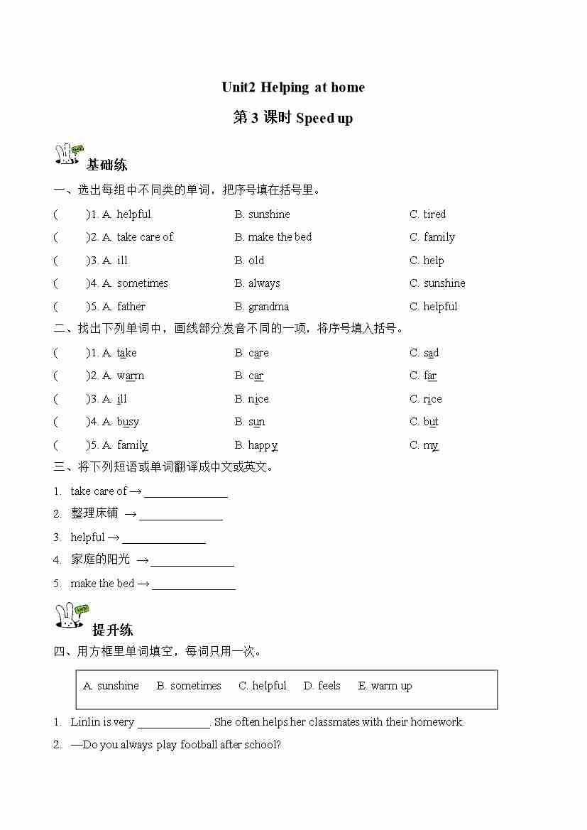 Unit 2 第3课时 Speed up(分层作业)英语外研版三起四年级上册(新教材)