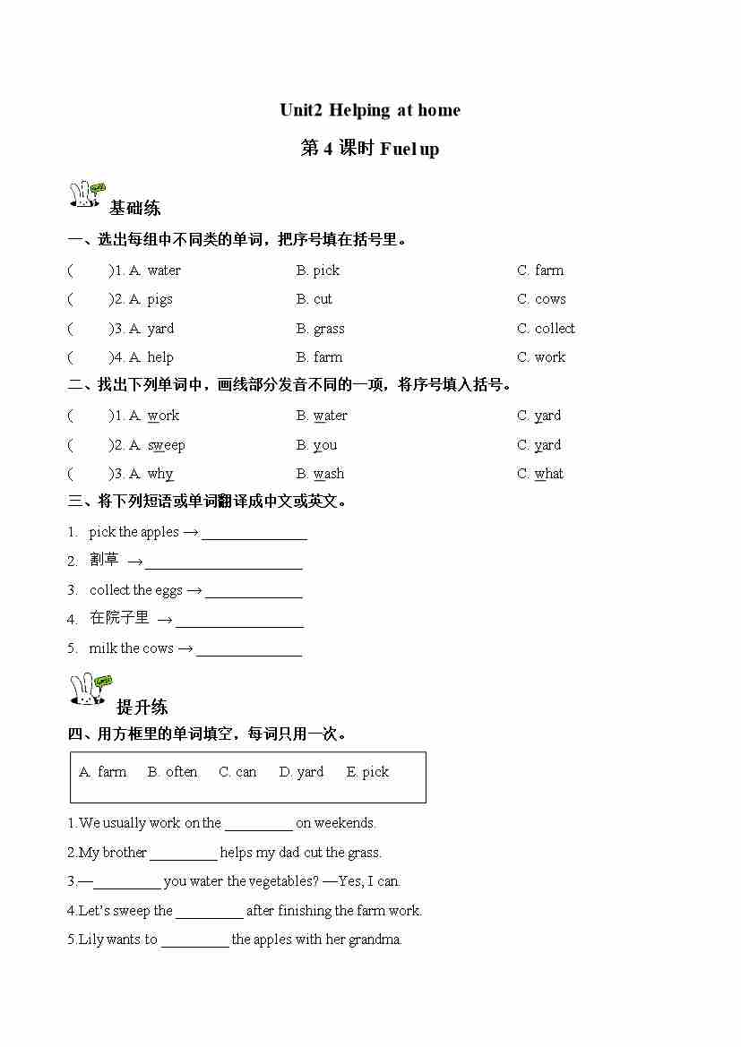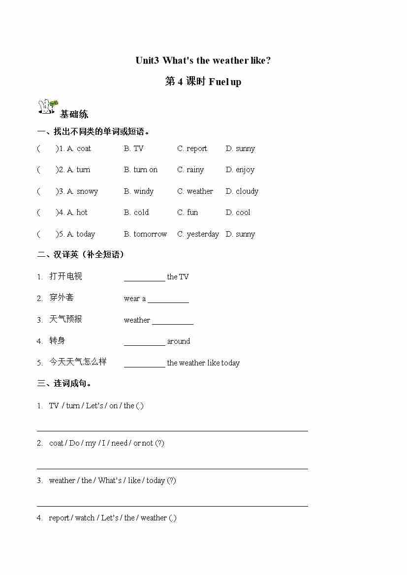 Unit5 第4课时 Fuel up(分层作业)英语外研版三起四年级上册(新教材)