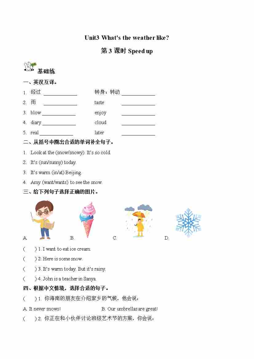 Unit 3 第3课时 Speed up(分层作业)英语外研版三起四年级上册(新教材)
