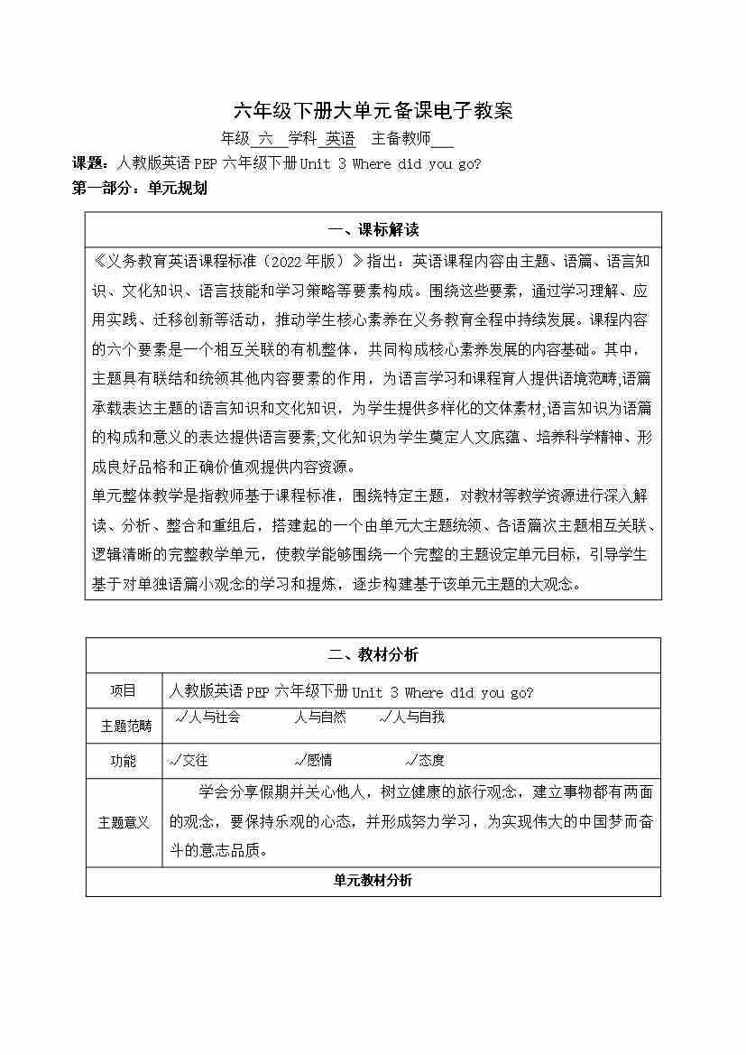 Unit 3 Where did you go 大单元整体(教学设计)