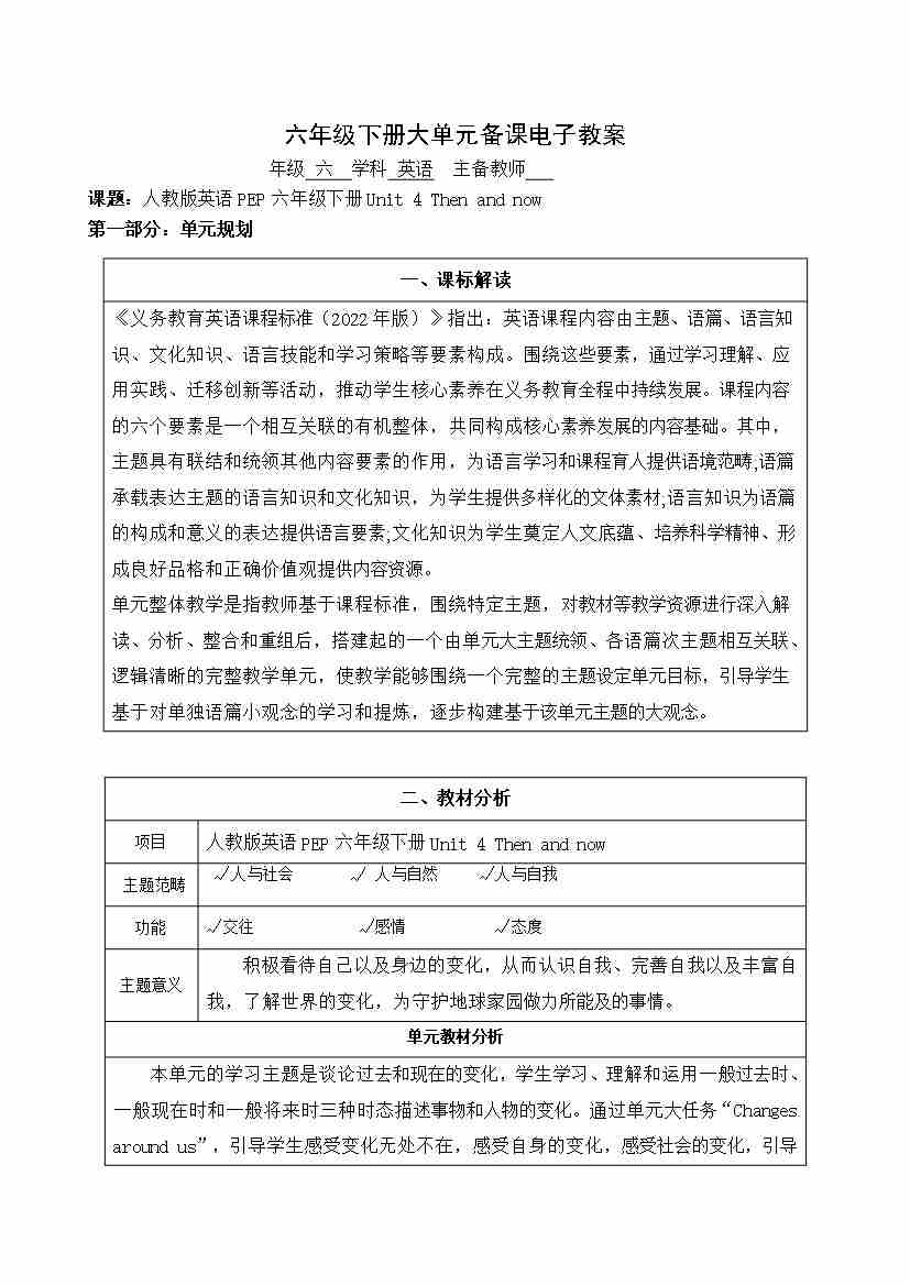 Unit 4 Then and now大单元整体(教案)