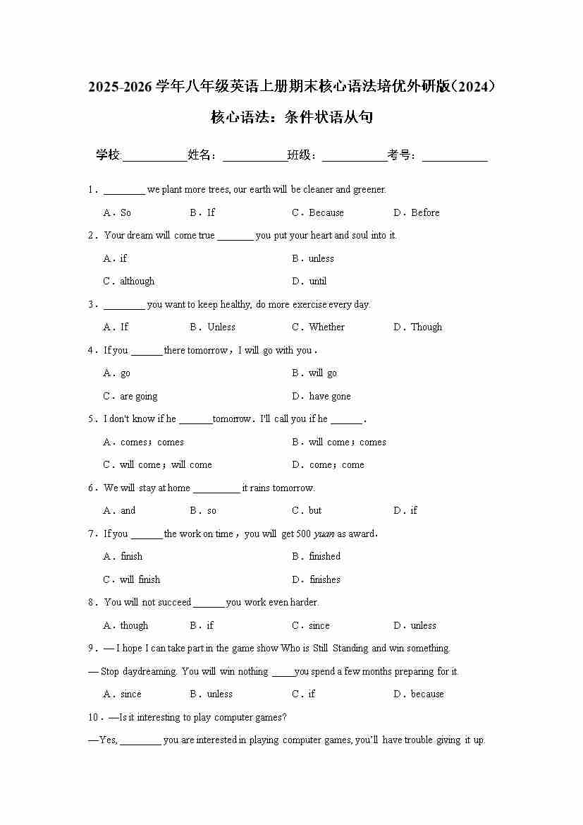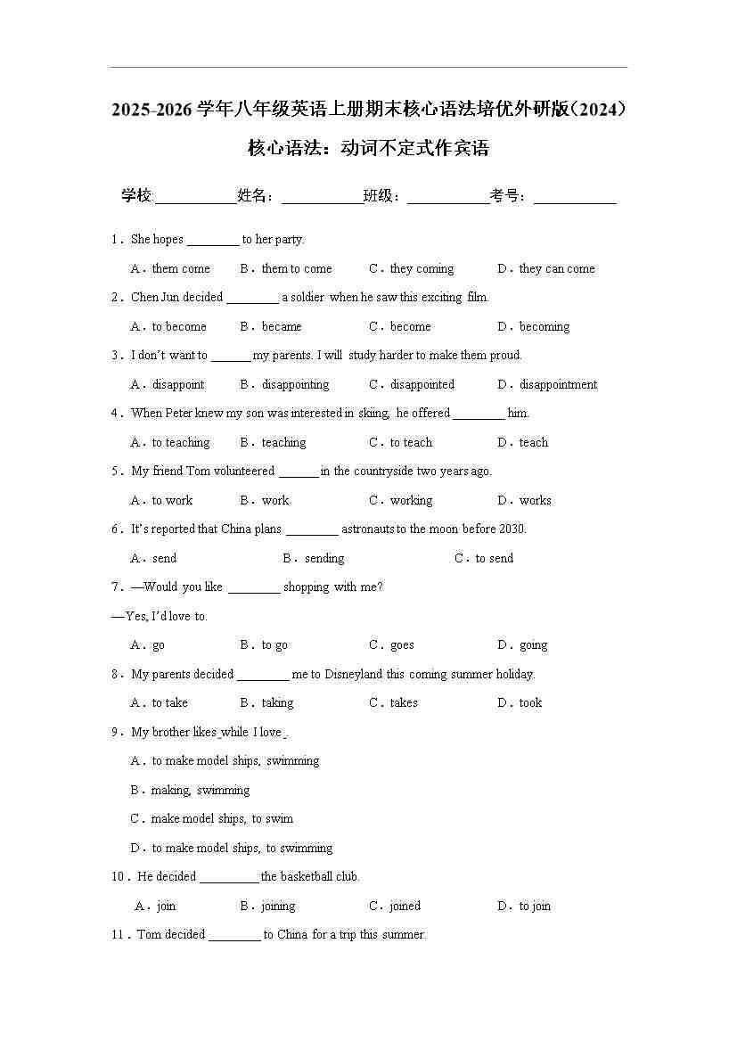 2025秋外研版英语八上期末复习 Unit 1 This is me词汇专练50题