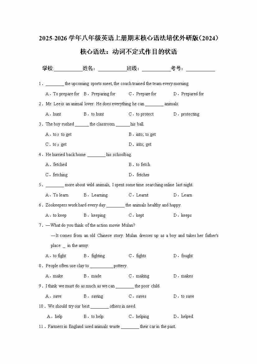 25秋八上外研英语 任务型阅读专项(原卷版)