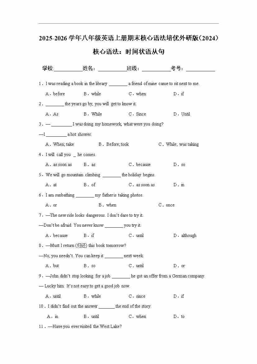 2025秋外研版英语八上期末复习Unit6When disaster steikes词汇专练100题