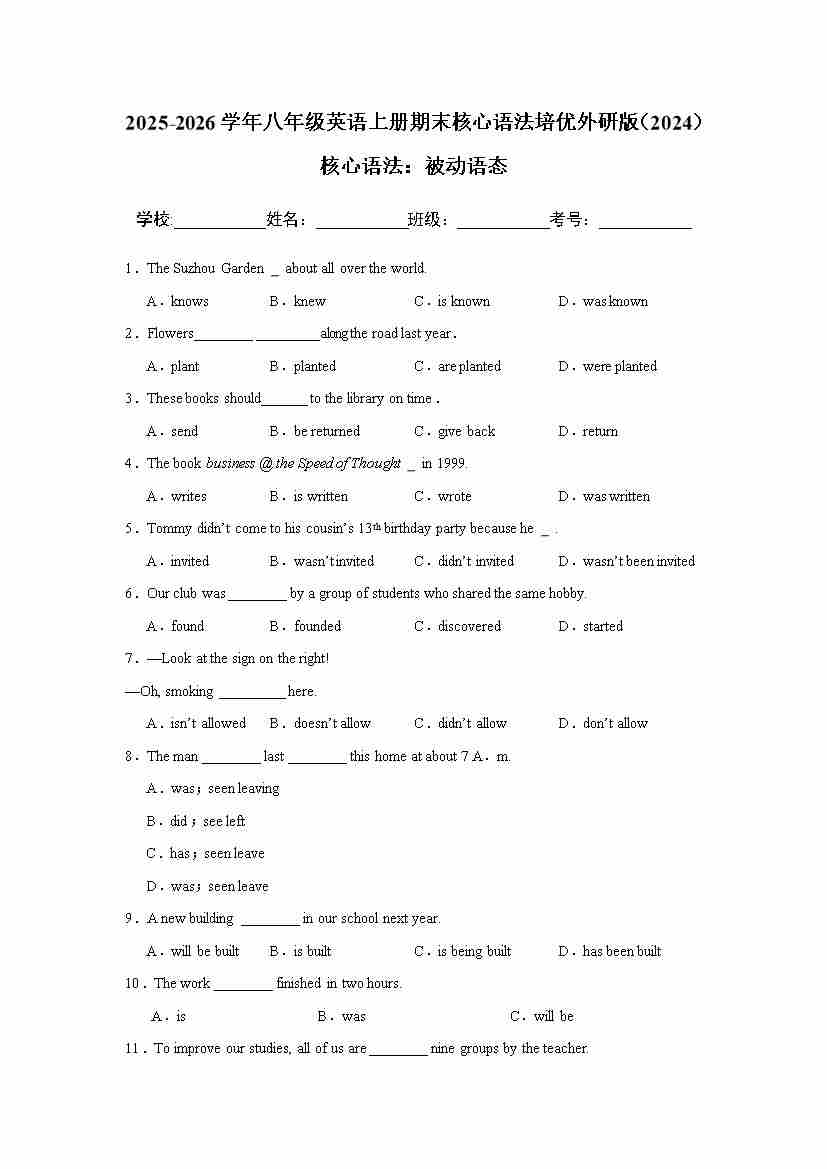 被动语态 25秋八上英语外研版