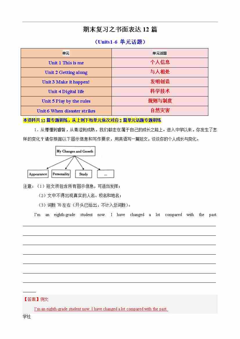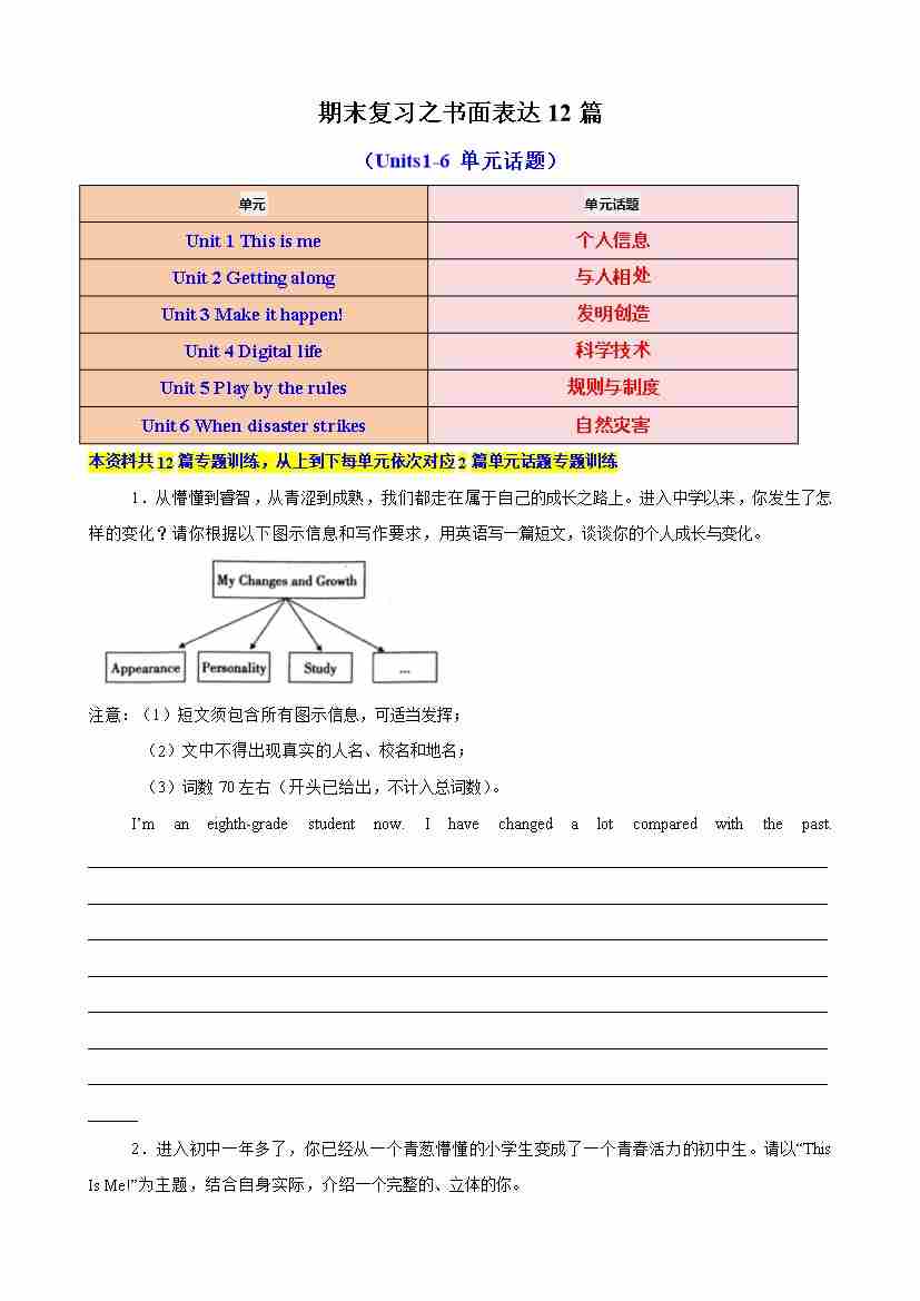 期末复习之书面表达12篇(Units1-6单元话题)(解析版)