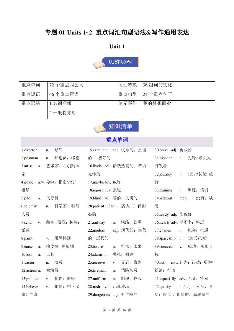 专题01 Units 1~2 重点词汇句型语法&写作通用表达(期末复习知识清单)(背诵版)88