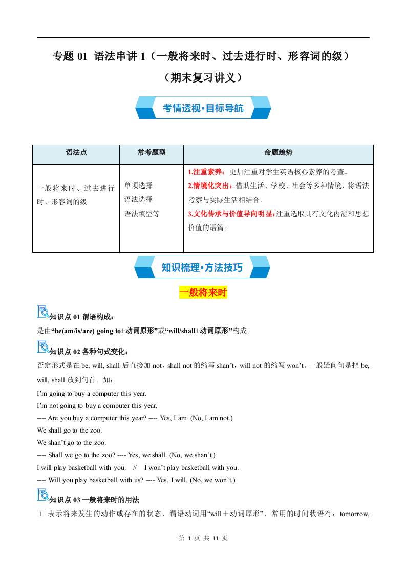 专题01 语法串讲1(一般将来时、过去进行时、形容词的级)(期末复习讲义)(解析版)11