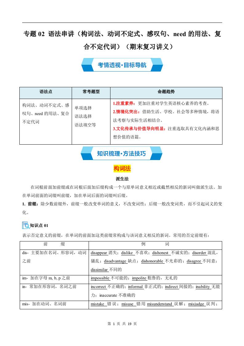 专题02 语法串讲2(构词法、动词不定式、感叹句、need的用法、复合不定代词)(期末复习讲义)(解析版)22