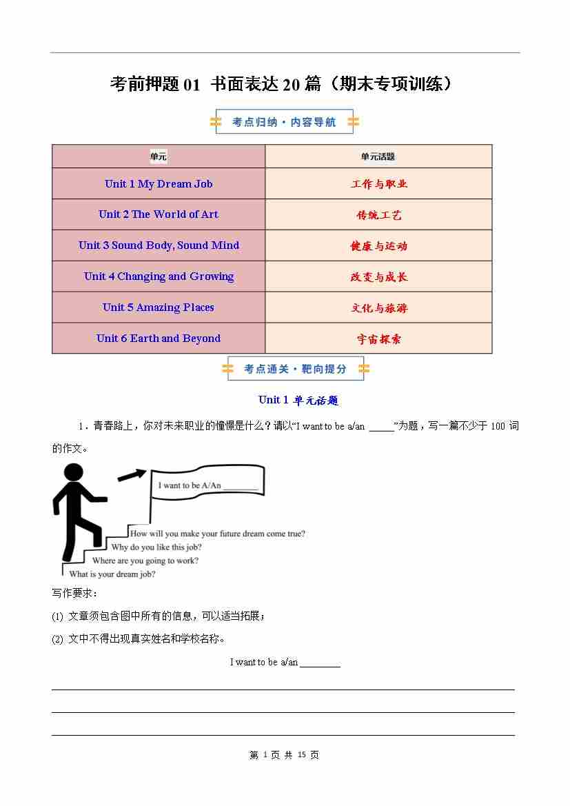 考前押题01 书面表达20篇(期末专项训练)(原卷版)