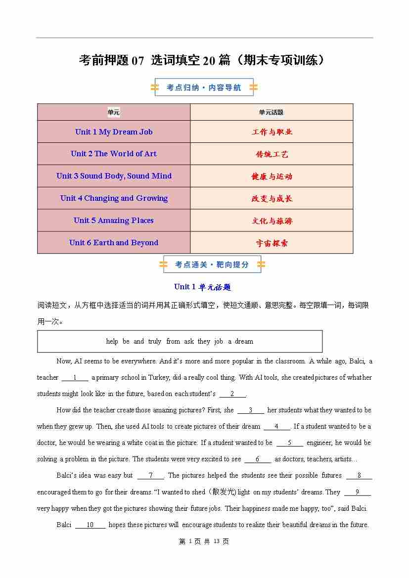 考前押题07 选词填空20篇(期末专项训练)(解析版)