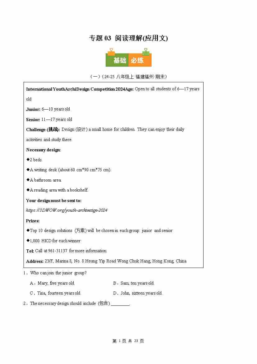 专题03 阅读理解(应用文)(期末真题汇编,福建专用)(解析版)