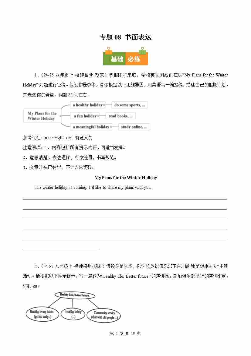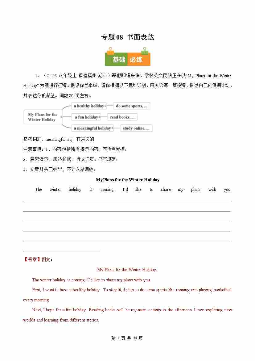 专题08 书面表达(期末真题汇编,福建专用)(解析版)