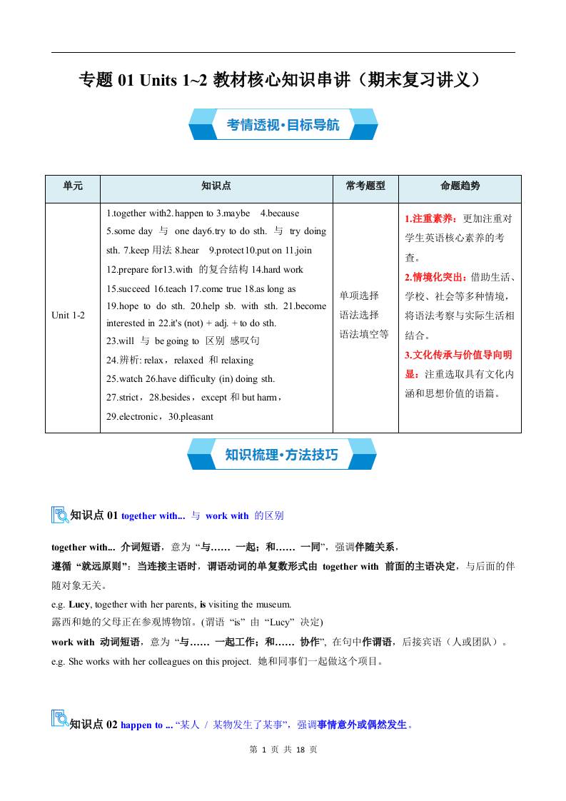 专题01 Units 1~2教材核心知识串讲(期末复习讲义)(解析版)11