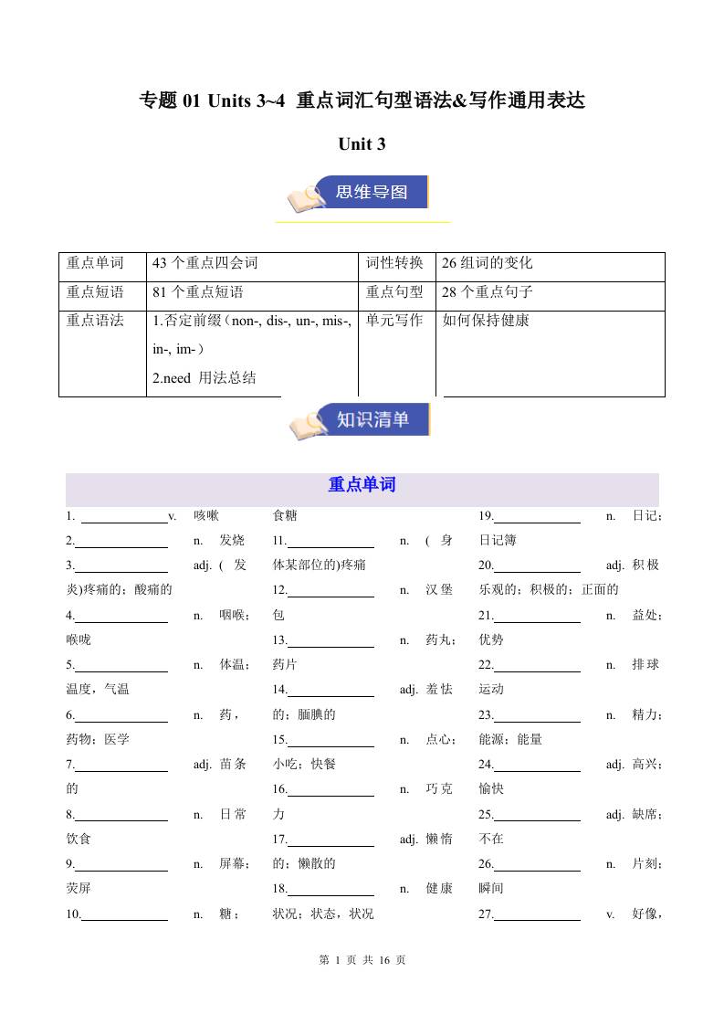 专题02 Units 3~4 重点词汇句型语法&写作通用表达(期末复习知识清单)(默写版)99