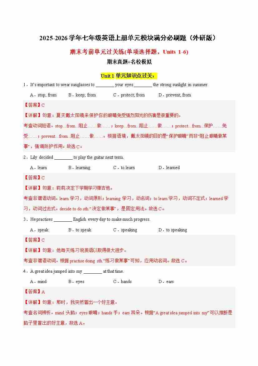 期末复习之重点单词,词性转换,短语,语法,句型练习100题(期末全册重点单词)(解析版)