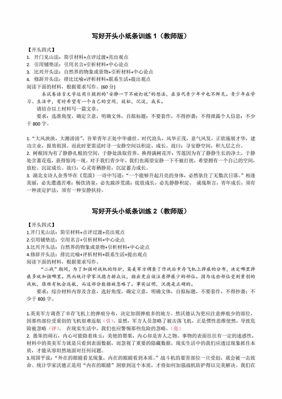 作文序列化小纸条无痛训练(答案)