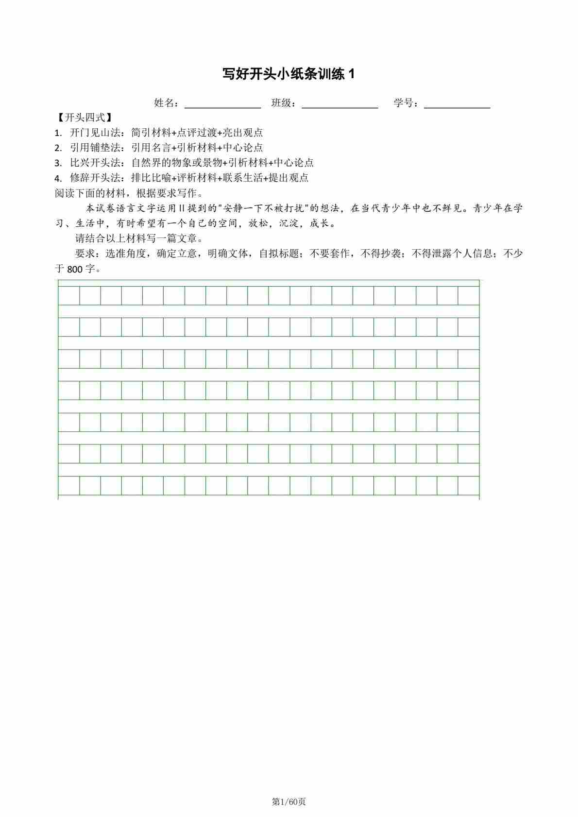 作文小纸条训练加强版——审题 立意 拟标题(20练) 训练版