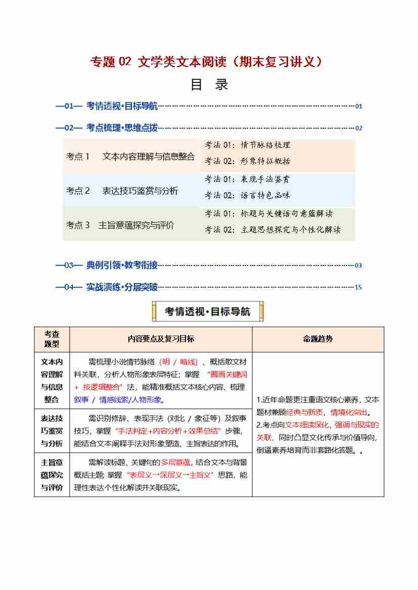 专题02 文学类文本阅读(期末复习讲义)(解析版)