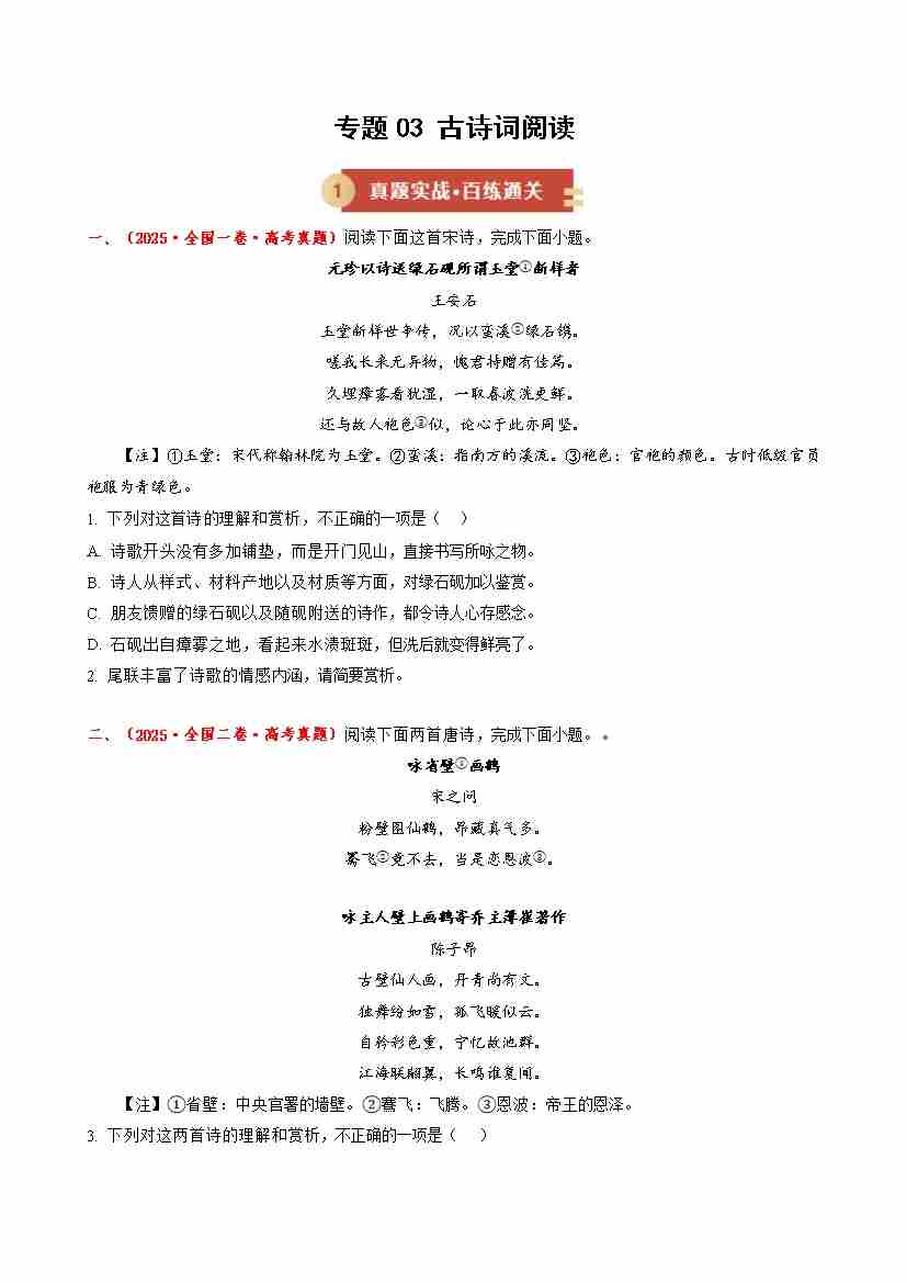 专题03 古诗词阅读(期末专项训练)(原卷版)