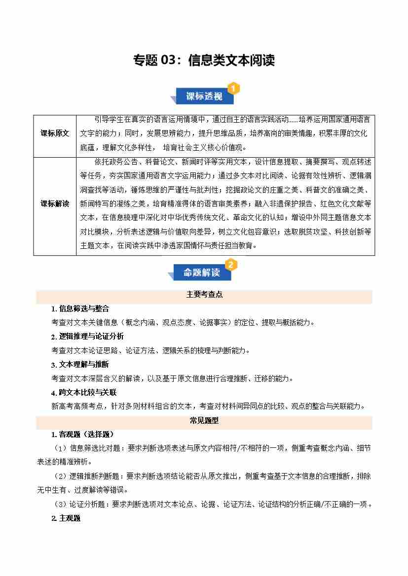 专题03 信息类文本阅读(期末复习知识清单)