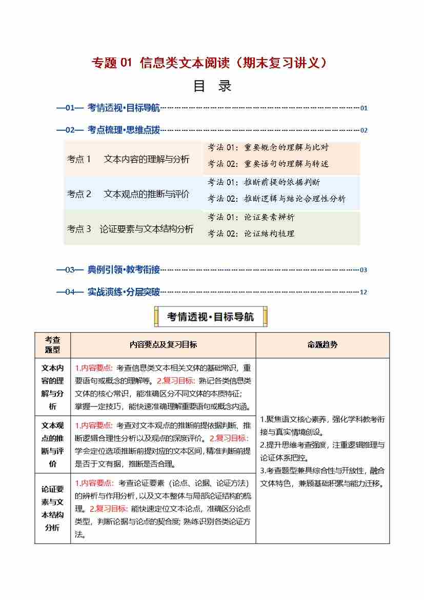 专题01 信息类文本阅读(期末复习讲义)(解析版)