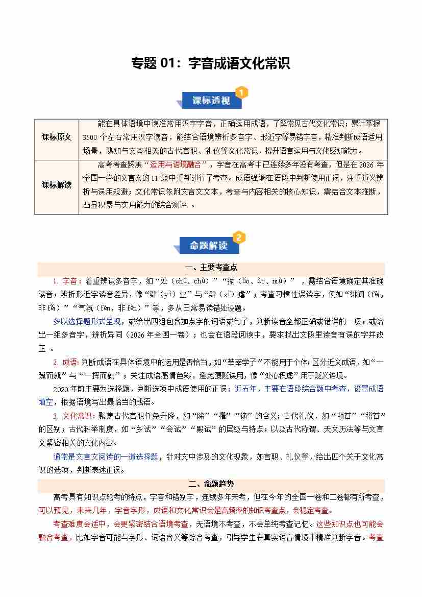 专题01 字音成语文化常识(期末复习知识清单)