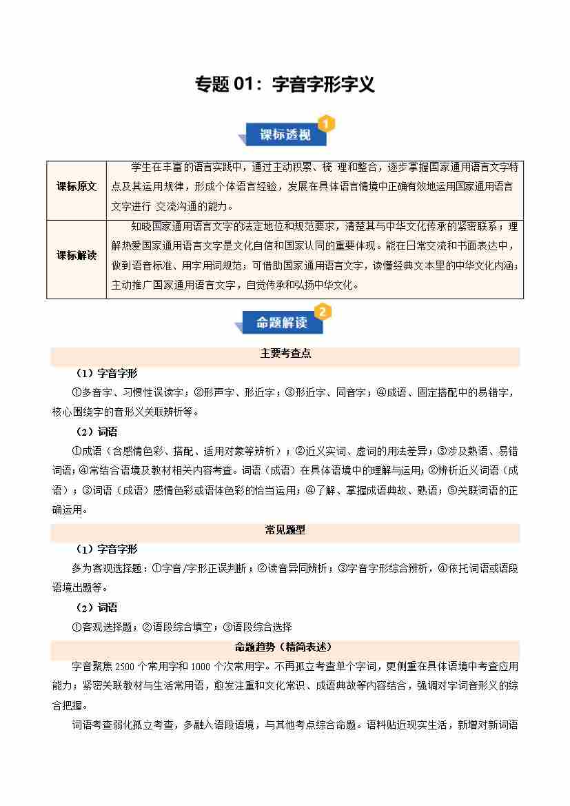 专题01:字音、字形及成语(考点清单)(教师版)