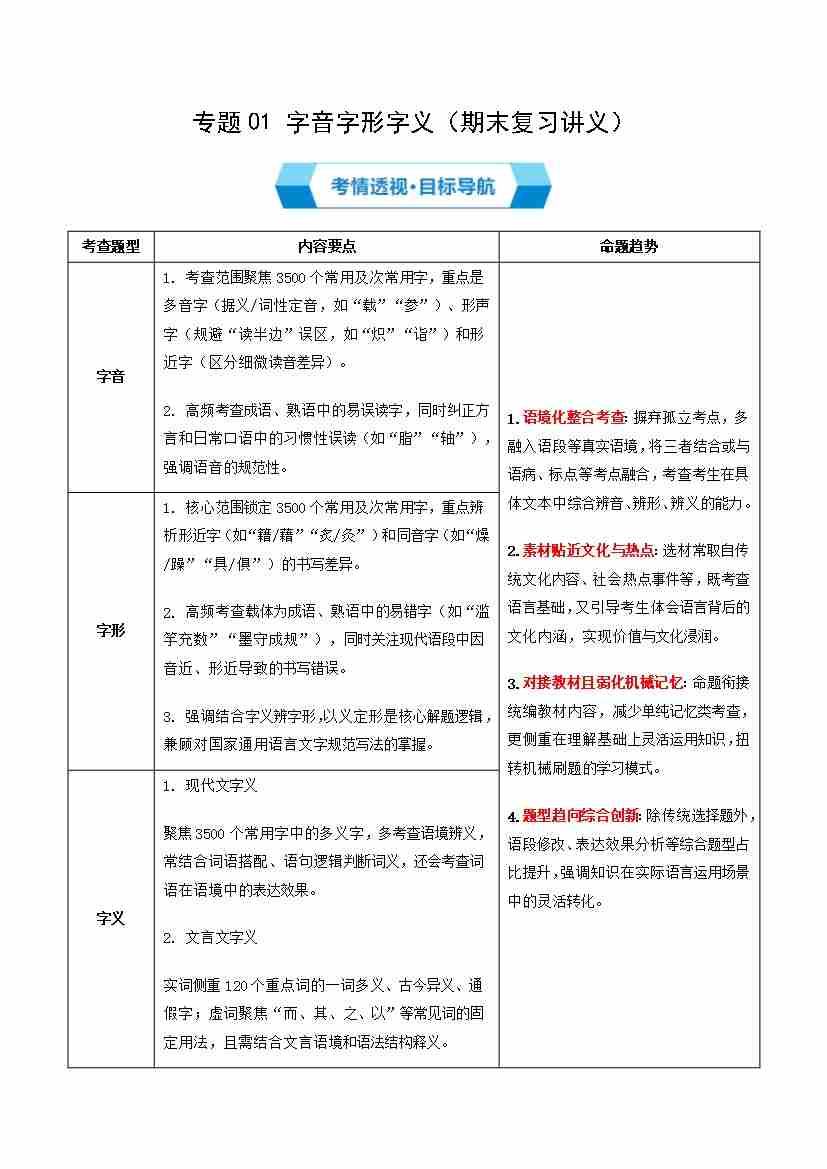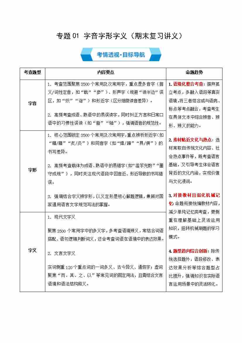 专题01 字音字形字义(期末复习知识清单)