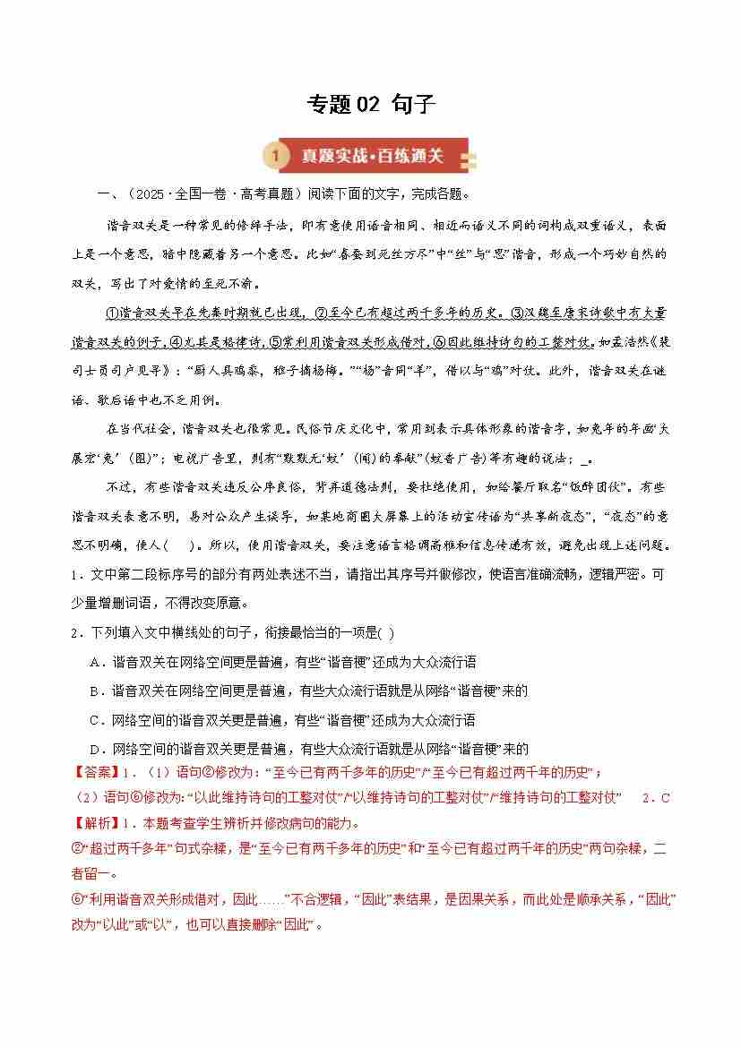 专题02 句子(期末复习讲义) (解析版)