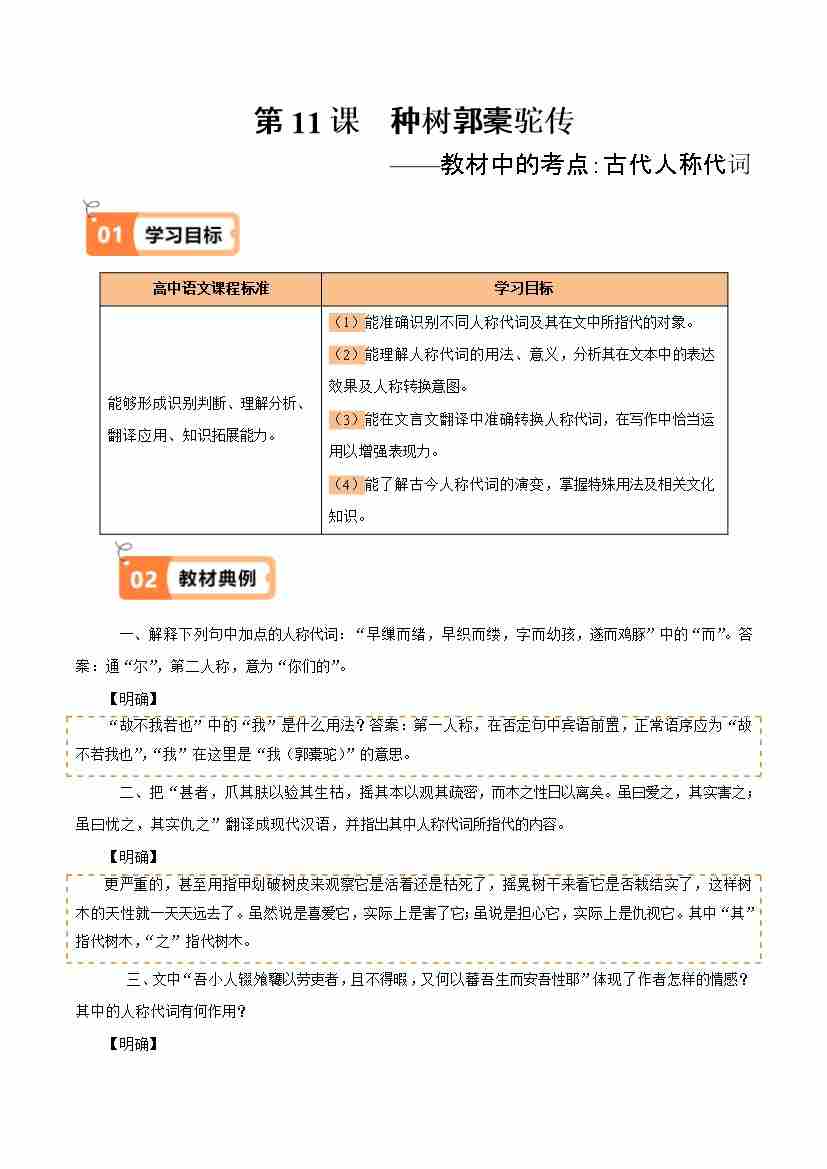 第11课 种树郭橐驼传(教材中的考点:古代人称代词)(学生版)