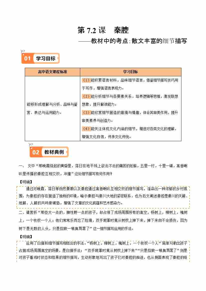 第7.2课 秦腔(教材中的考点:散文丰富的细节描写)(学生版)