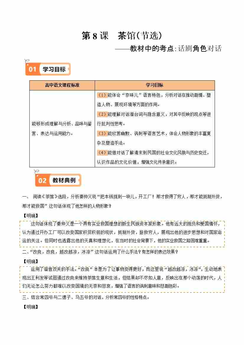 第8课 茶馆(节选)(教材中的考点:话剧角色对话)(学生版)