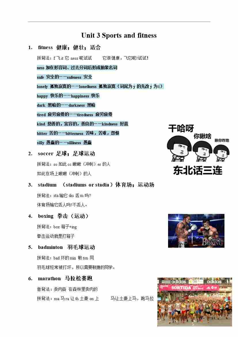 Unit 3 Sports and fitness-【快乐背单词】高一英语单词暑假巧记妙背(2019人教版必修第一册)