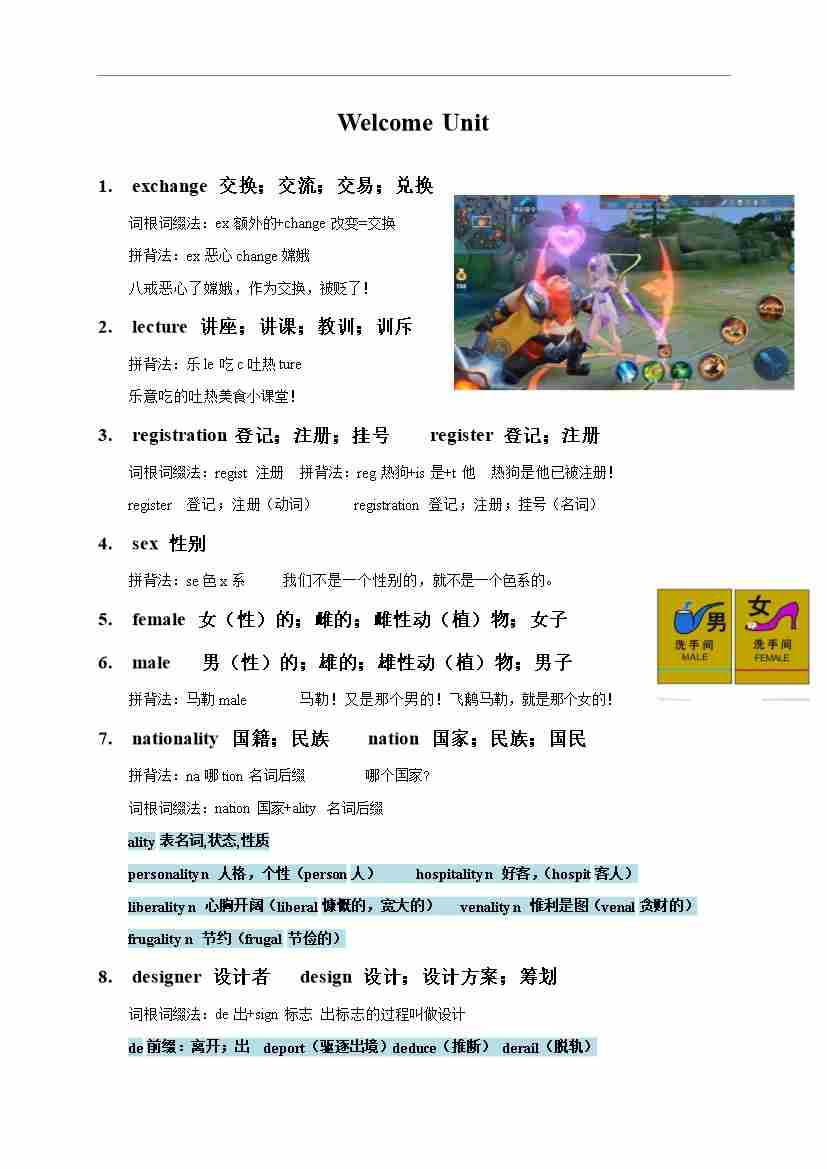 Welcome unit-【快乐背单词】高一英语单词暑假巧记妙背(2019人教版必修第一册)