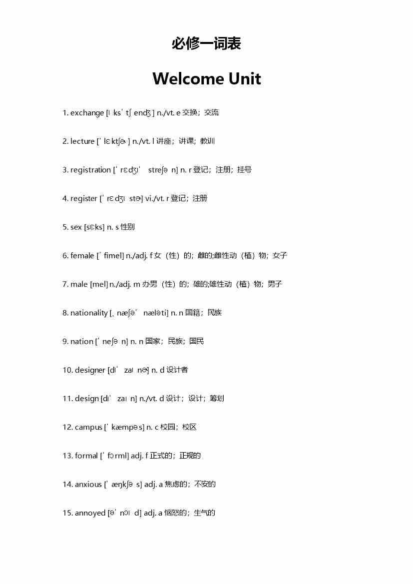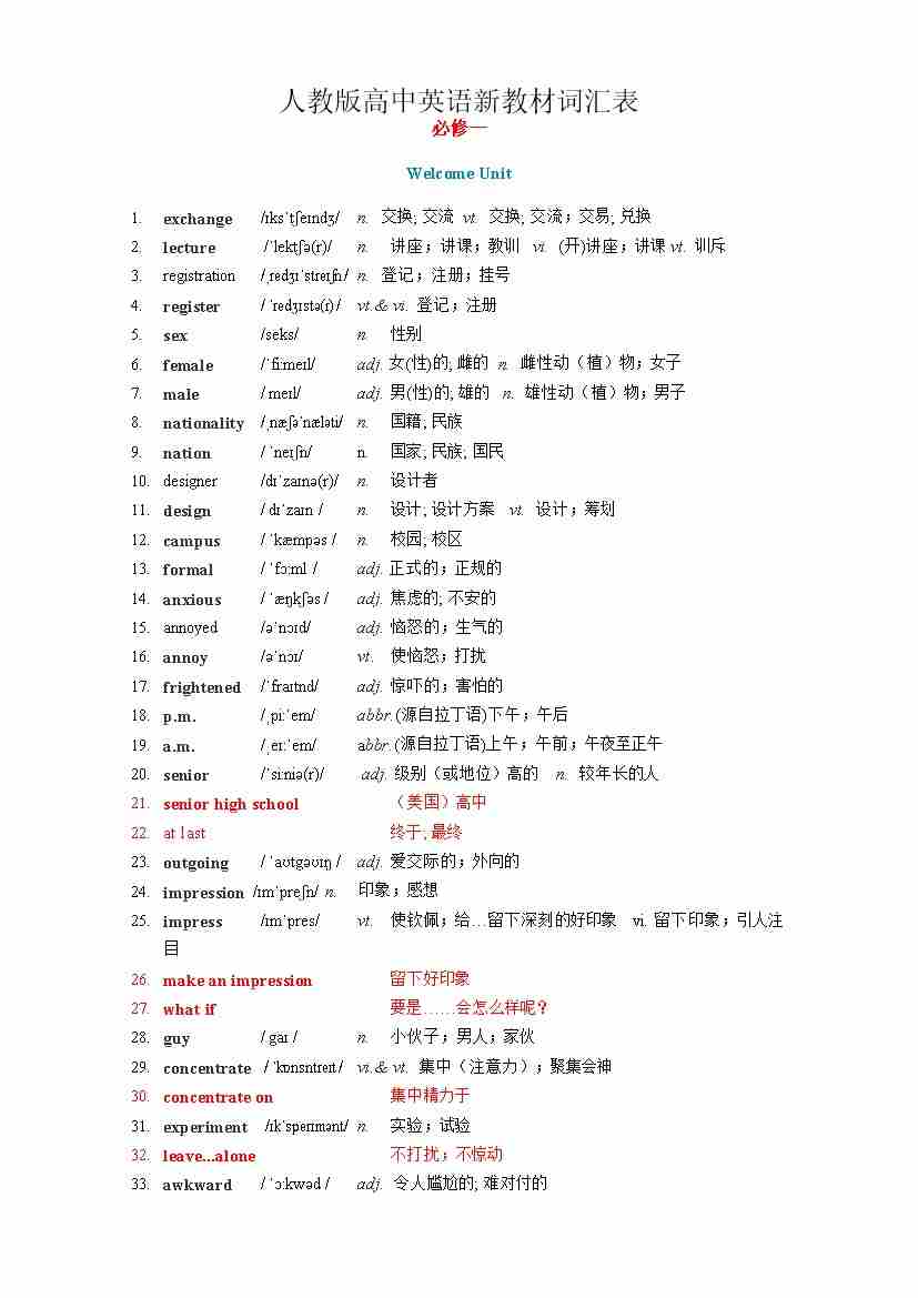 新人教版高中英语词汇表(必修1)(_word 打印版)