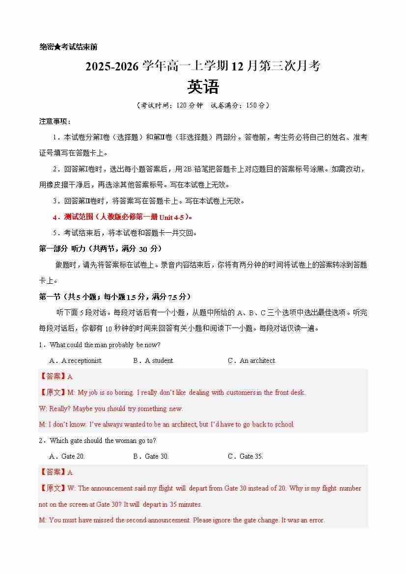 第三次月考听力音频