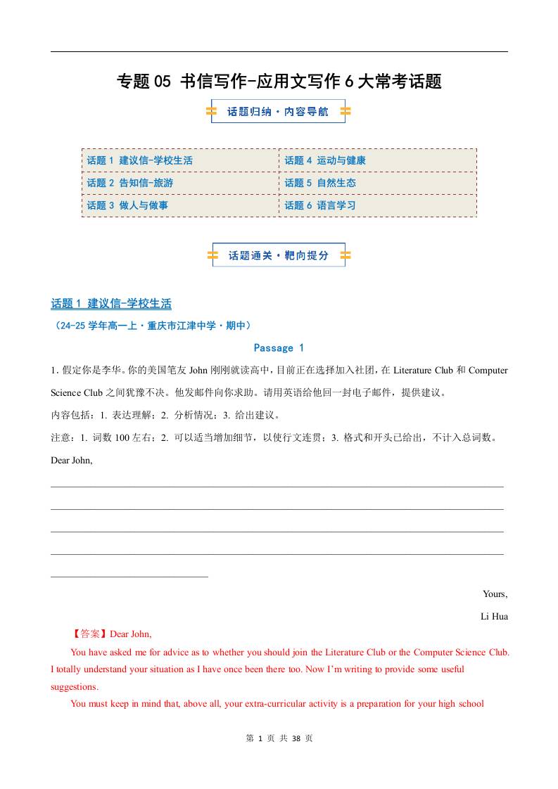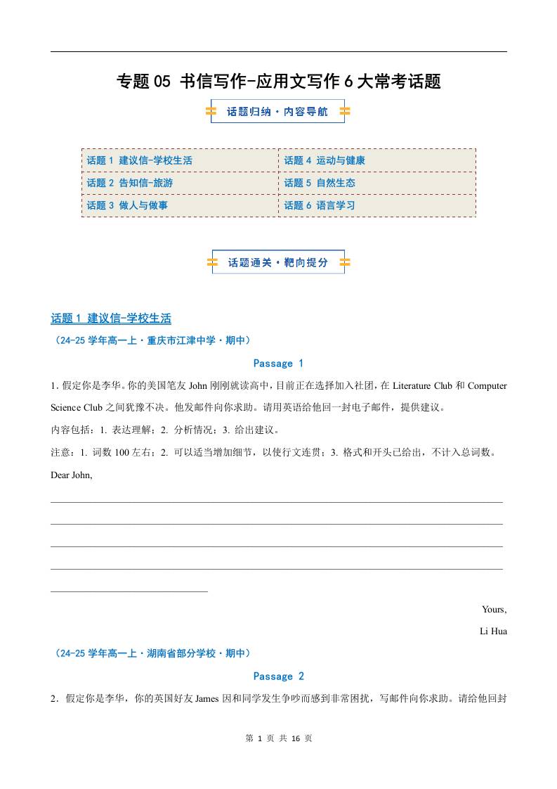 考前押题05 应用文写作6大常考话题(期中专项训练)(解析版)