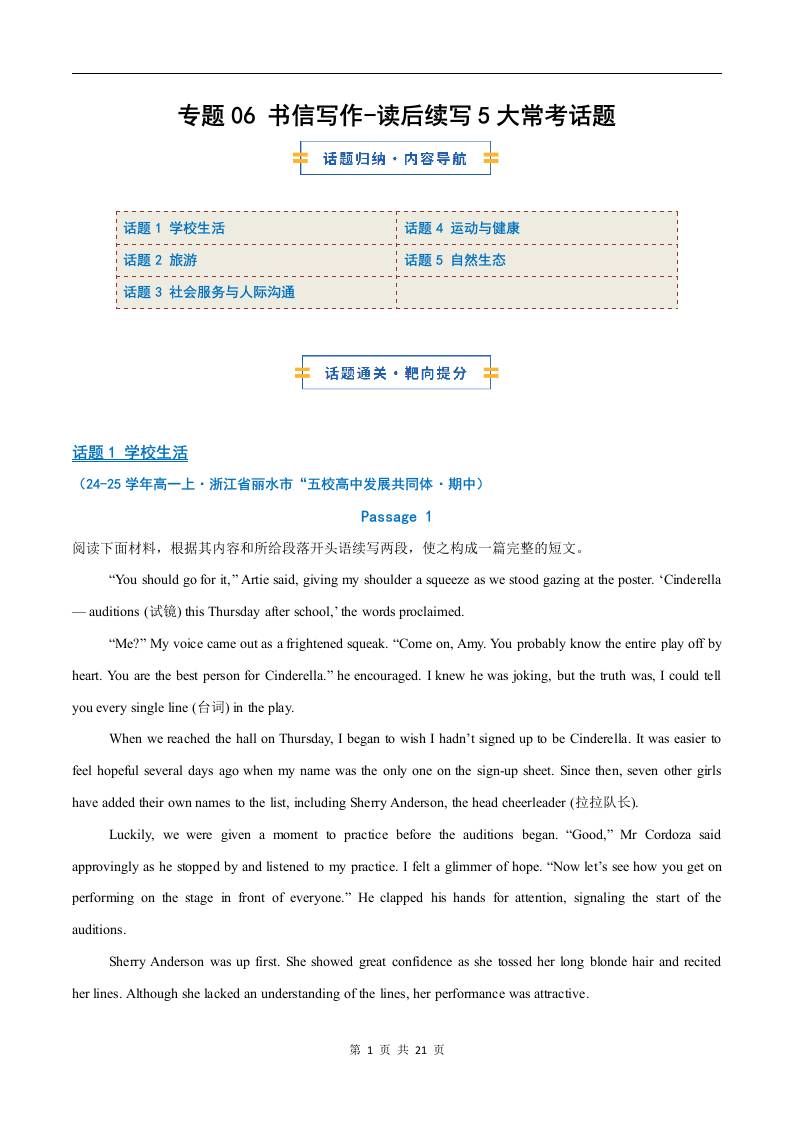 考前押题06 读后续写5大常考话题(期中专项训练)(解析版)