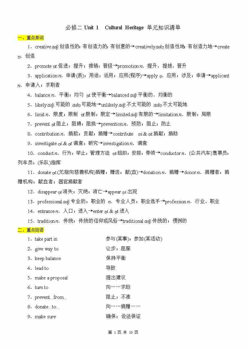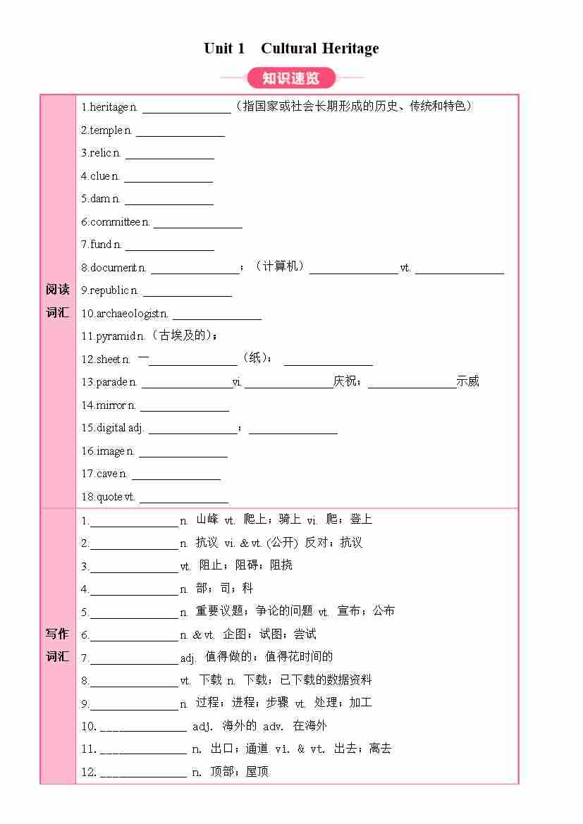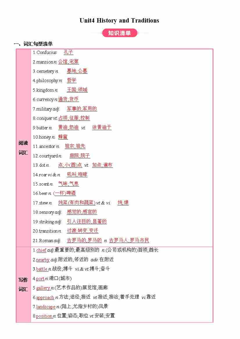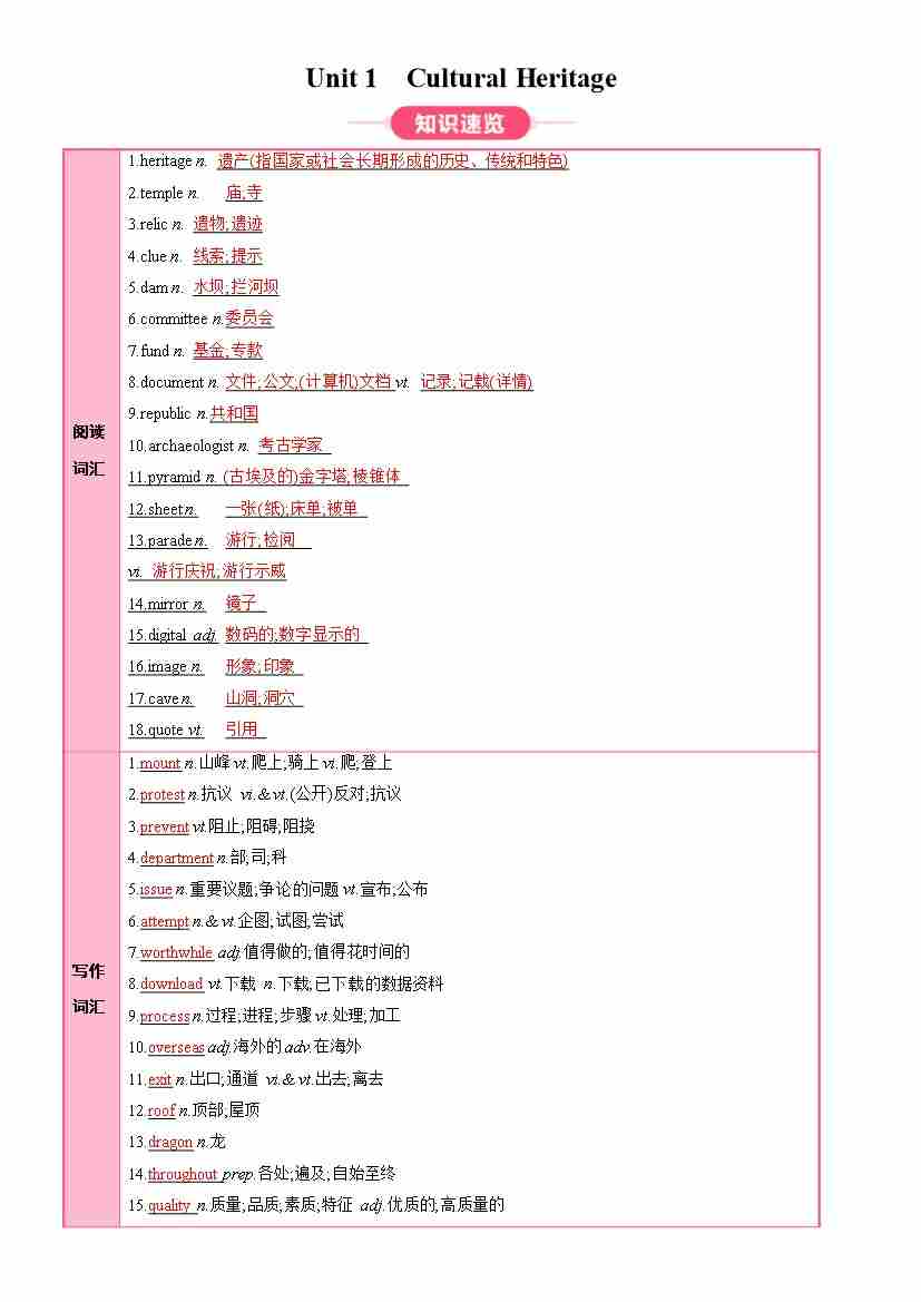 Unit 1 Cultural Heritage(知识清单)(解析版)