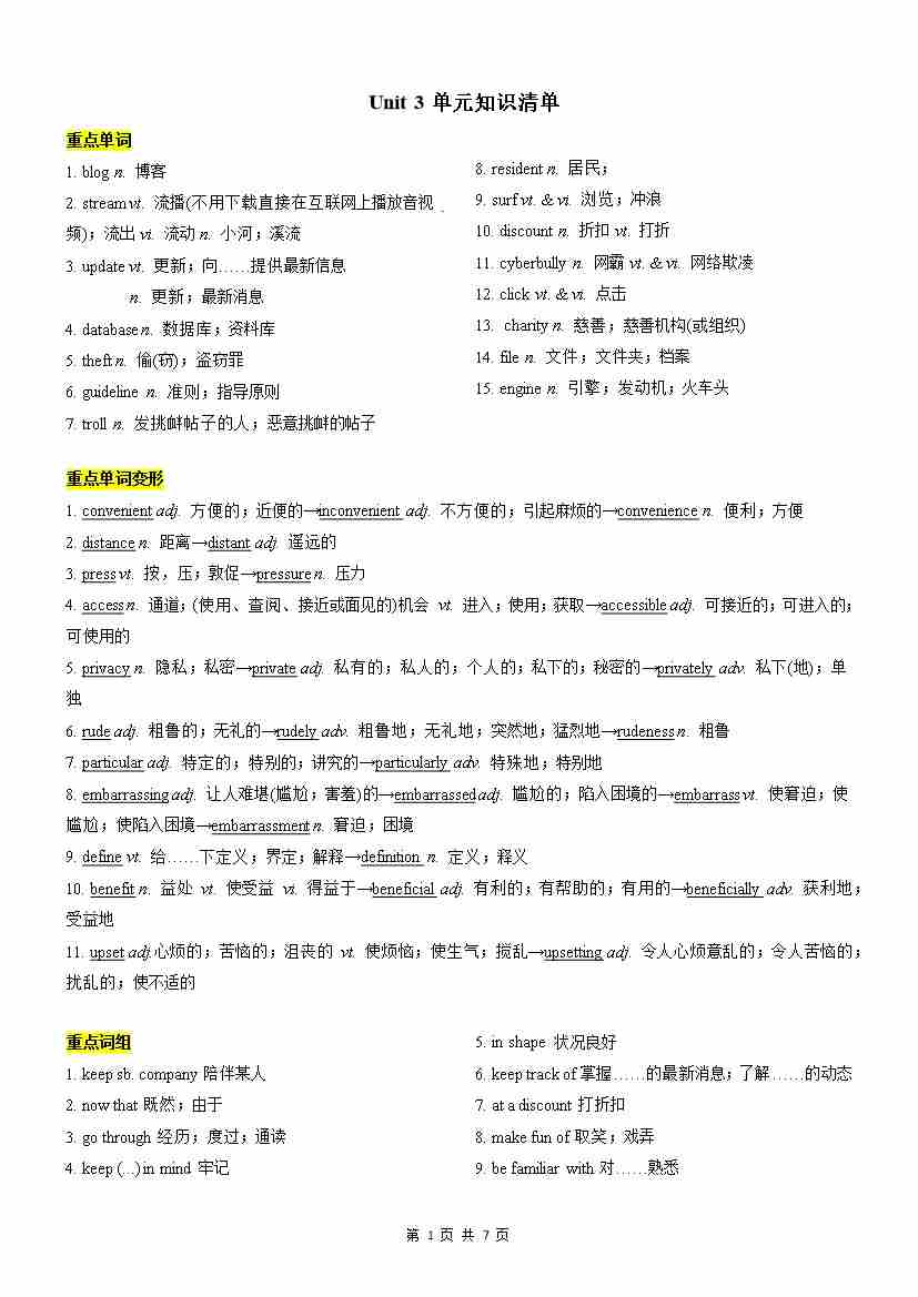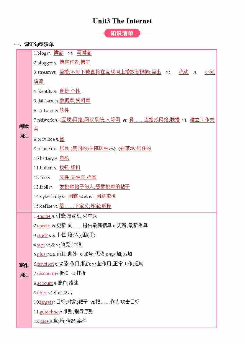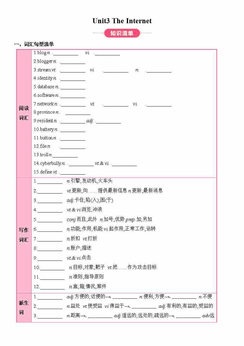 Unit 3 The Internet【速记清单】-2024-2025学年高一英语单元速记巧练(人教版2019必修第二册)_48241033_17489464491943207