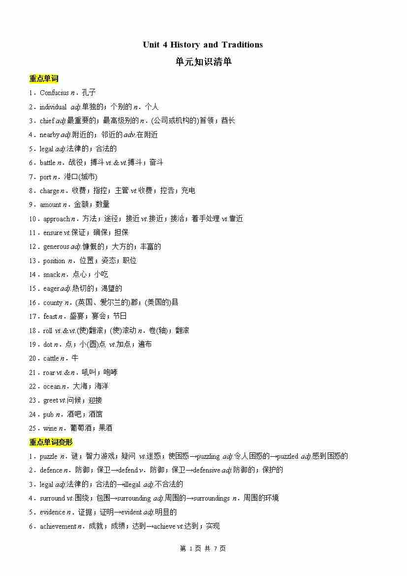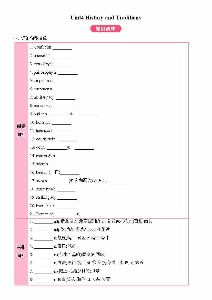 Unit 4 History and Traditions【速记清单】-2024-2025学年高一英语单元速记巧练(人教版2019必修第二册)_48346991_17489464484724248